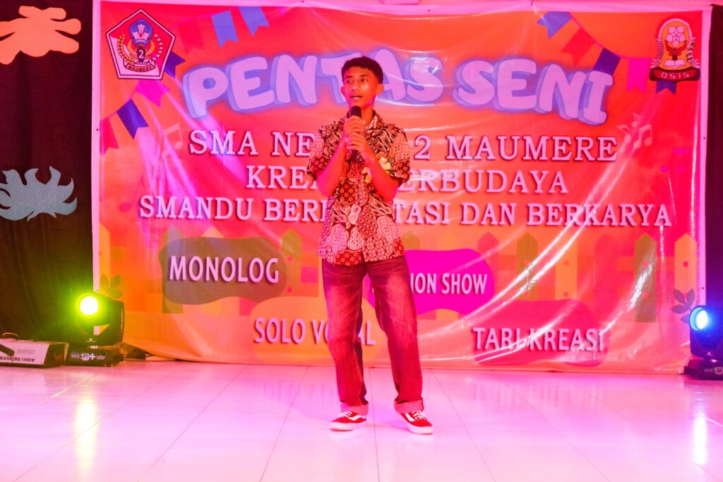 Maumere, 10 Desember 2025 – Sekolah Menengah Atas Negeri (SMAN) 2 Maumere sukses menggelar Pentas Seni (Pensi) bertajuk “Kreasi Berbudaya, Smandu Berprestasi dan Berkarya” pada Rabu, 10 Desember 2025. Acara yang merupakan inisiatif Organisasi Siswa Intra Sekolah (OSIS) ini berlangsung meriah di Aula SMAN 2 Maumere, Jalan Balitbang, Kelurahan Kota Uneng, Kabupaten Sikka.