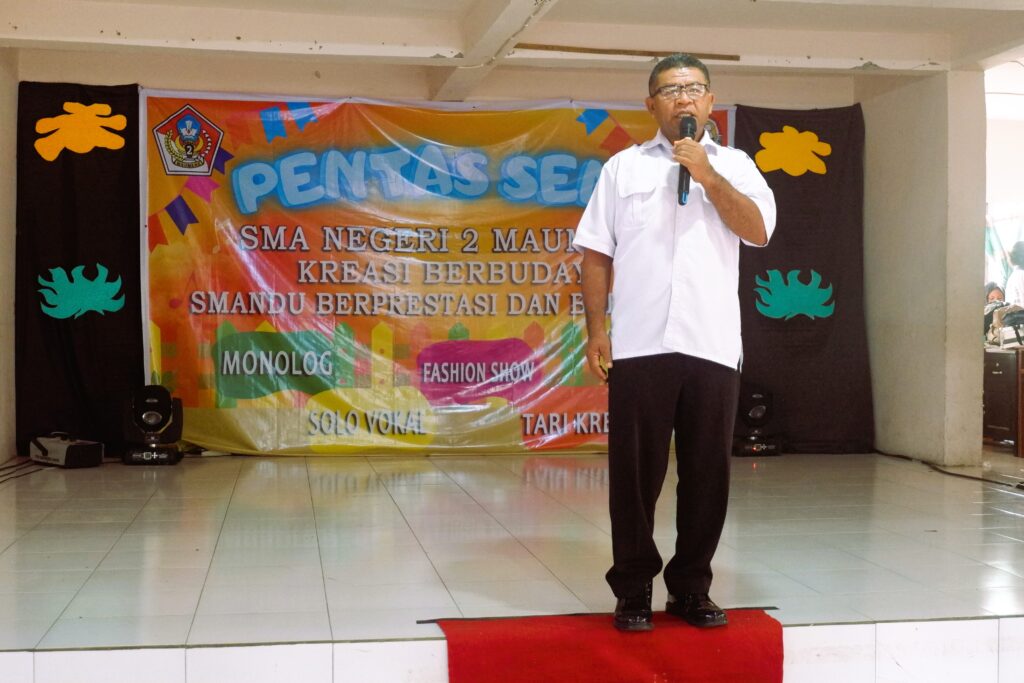 Pelaksana Tugas (PLT) Kepala Sekolah SMAN 2 Maumere, Hendrikus Hadir, S.Pd., dalam sambutannya menyampaikan kebanggaan atas keberhasilan OSIS menyelenggarakan kegiatan yang mengembangkan minat dan bakat peserta didik.