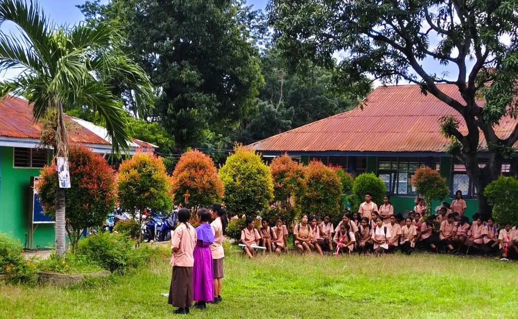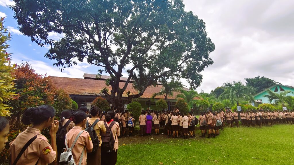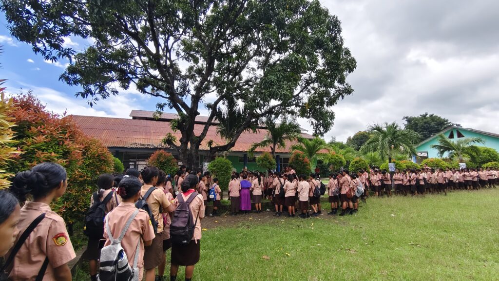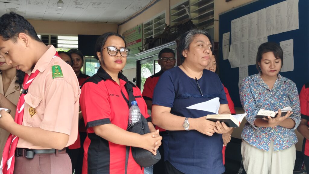 Maumere, 13 Maret 2026 – Dalam rangka menghayati masa Prapaskah, peserta didik dan pendidik yang beragama Katolik di SMA Negeri 2 Maumere melaksanakan kegiatan Doa Jalan Salib pada Jumat (13/03/2026). Kegiatan rohani tersebut dilaksanakan di Lapangan Apel SMAN 2 Maumere yang beralamat di Jl. Balitbang, Kota Uneng, Kecamatan Alok, Kabupaten Sikka, Nusa Tenggara Timur. Kegiatan dimulai pada pukul 11.00 WITA setelah seluruh rangkaian kegiatan belajar mengajar selesai.