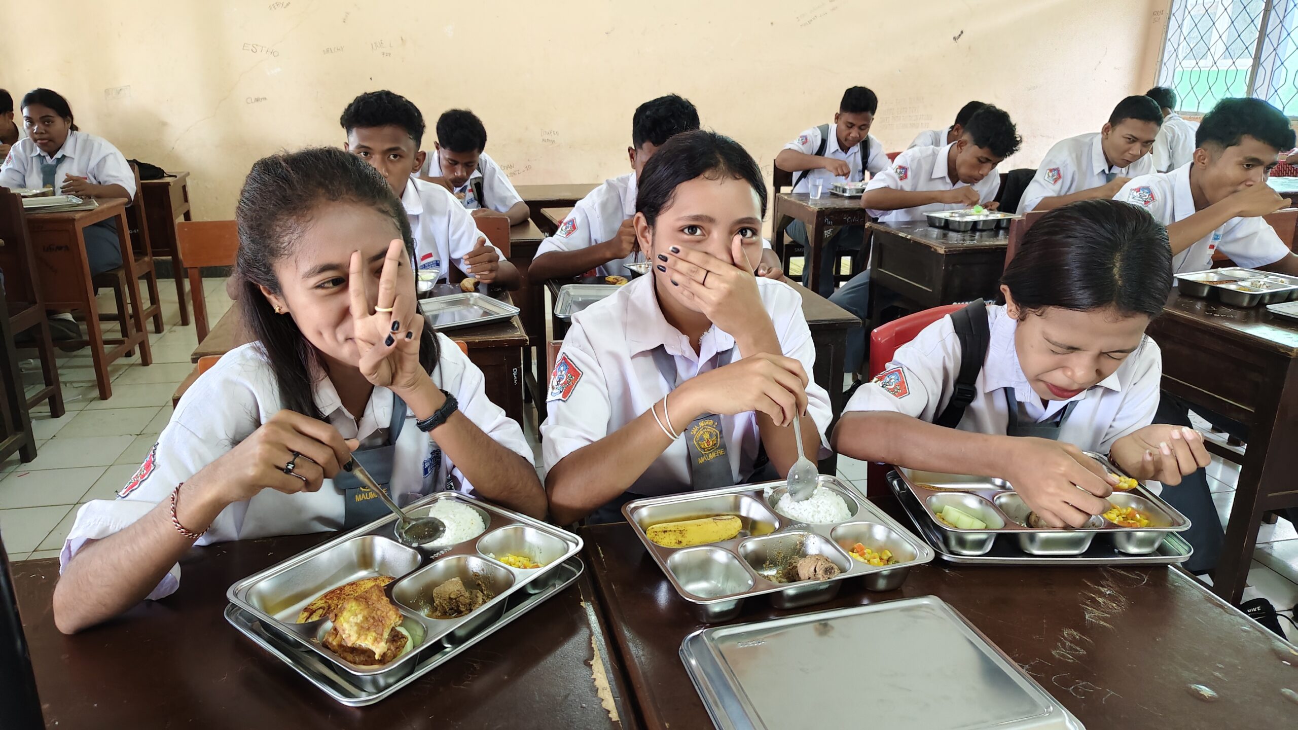Program Makanan Bergizi Gratis Hari Kedua Berlangsung Lancar di SMAN 2 Maumere