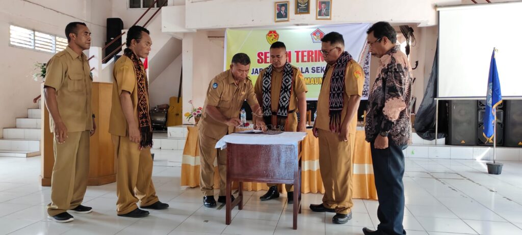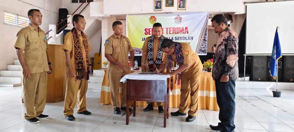 Momentum penting dalam acara ini ditandai dengan penandatanganan berita acara serah terima jabatan dari Plt Kepala Sekolah Hendrikus Hadir, S.Pd. kepada Petrus Yakobus Sorowea, S.Fil., yang disaksikan oleh Kepala Kantor cabang Dinas Pendidikan Wilayah IV Prov NTT, Pengawas Pembina, dan Ketua Komite. Selanjutnya, Plt Kepala Sekolah membacakan surat pernyataan tanggung jawab mutlak di hadapan seluruh guru, tenaga kependidikan, dan tamu undangan.