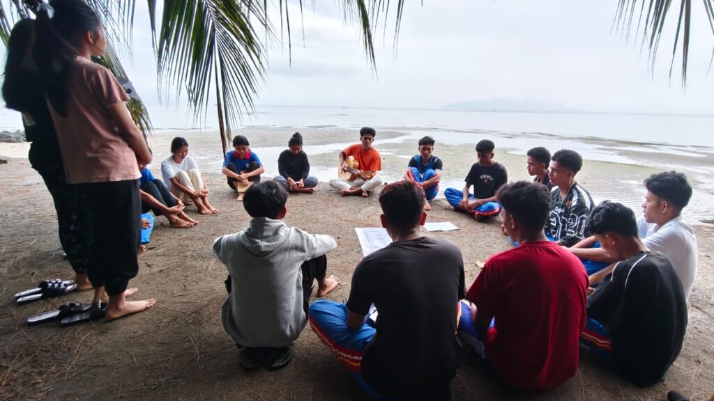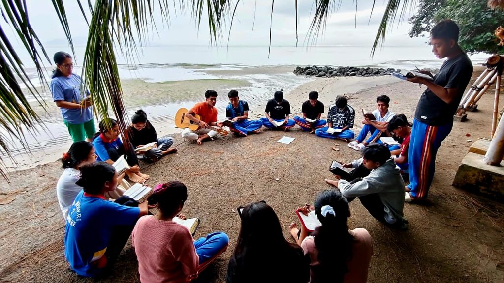 Memasuki hari kedua, Jumat (16/1/2026), kegiatan diawali dengan saat teduh dan olahraga pagi di pesisir Pantai Gading yang dipandu oleh guru pendamping.