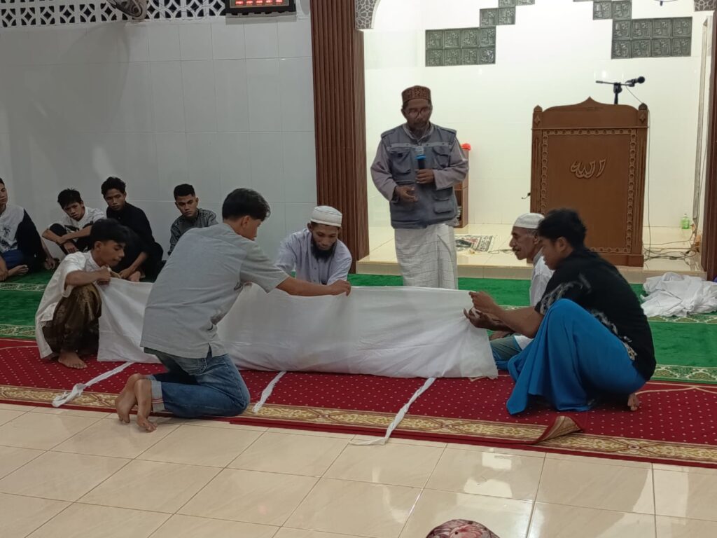 Selain itu, peserta juga mendapatkan materi praktik penyelenggaraan jenazah, meliputi tata cara memandikan, mengkafani, dan menyolatkan mayat sesuai hukum Islam. Dijelaskan bahwa mengurus jenazah merupakan fardu kifayah bagi umat Islam, sehingga penting bagi setiap Muslim untuk memahami dan mampu melaksanakannya dengan benar, mulai dari niat, urutan pelaksanaan, hingga doa-doa yang dibaca.