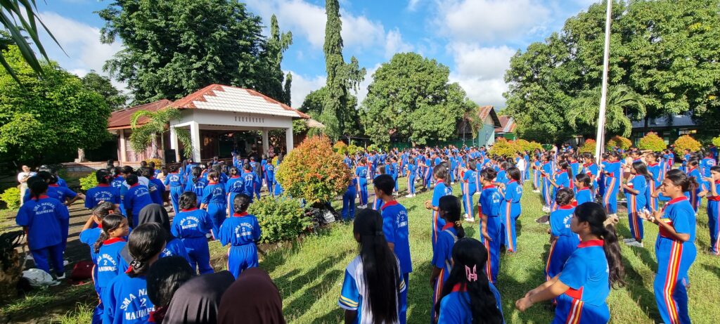 Maumere, 14 Maret 2026 – SMA Negeri 2 Maumere menggelar kegiatan Senam Anak Indonesia Hebat pada Sabtu pagi (14/03/2026) pukul 07.00–08.15 WITA. Kegiatan ini berlangsung di halaman tengah atau Lapangan Apel SMA Negeri 2 Maumere, yang berlokasi di Jl. Balitbang, Kota Uneng, Kecamatan Alok, Kabupaten Sikka, Nusa Tenggara Timur.